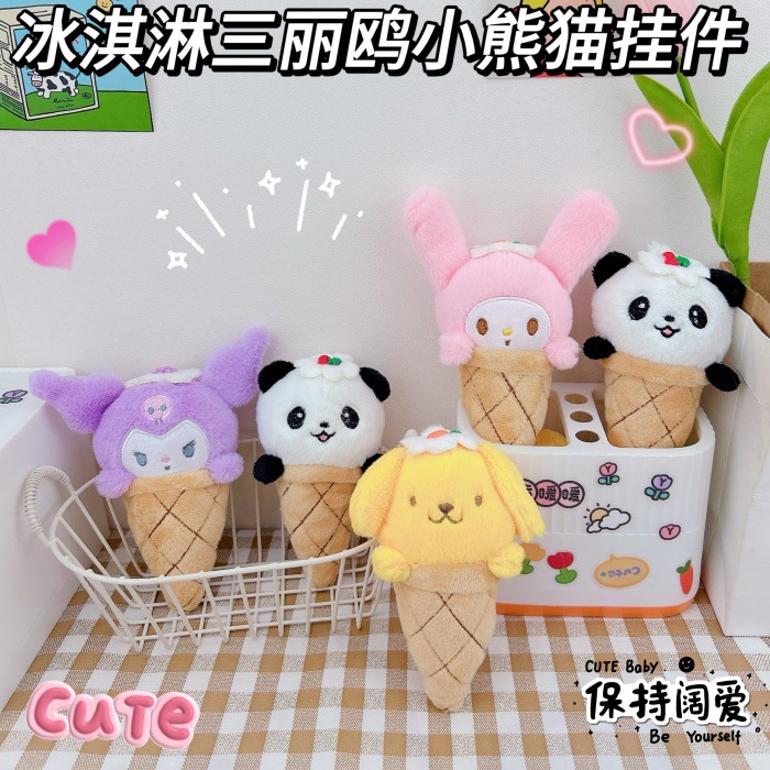 アイスクリーム三麗欧克洛米のパンダのキーホルダーのペンダントの創意のぬいぐるみのカップルのかばんの小さいペンダント