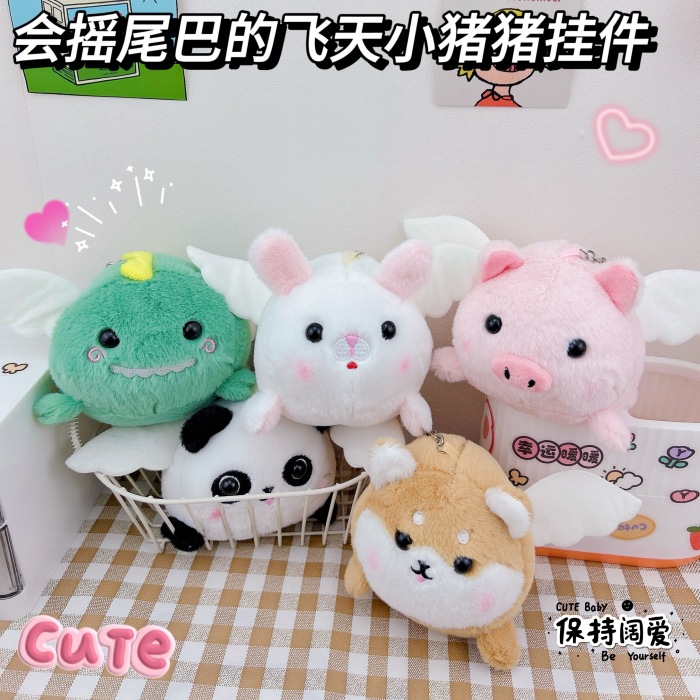 尻尾を振る飛天のブタのキーチェーンのアイデアのぬいぐるみのカップルのカバンは卸売りを掛けます。