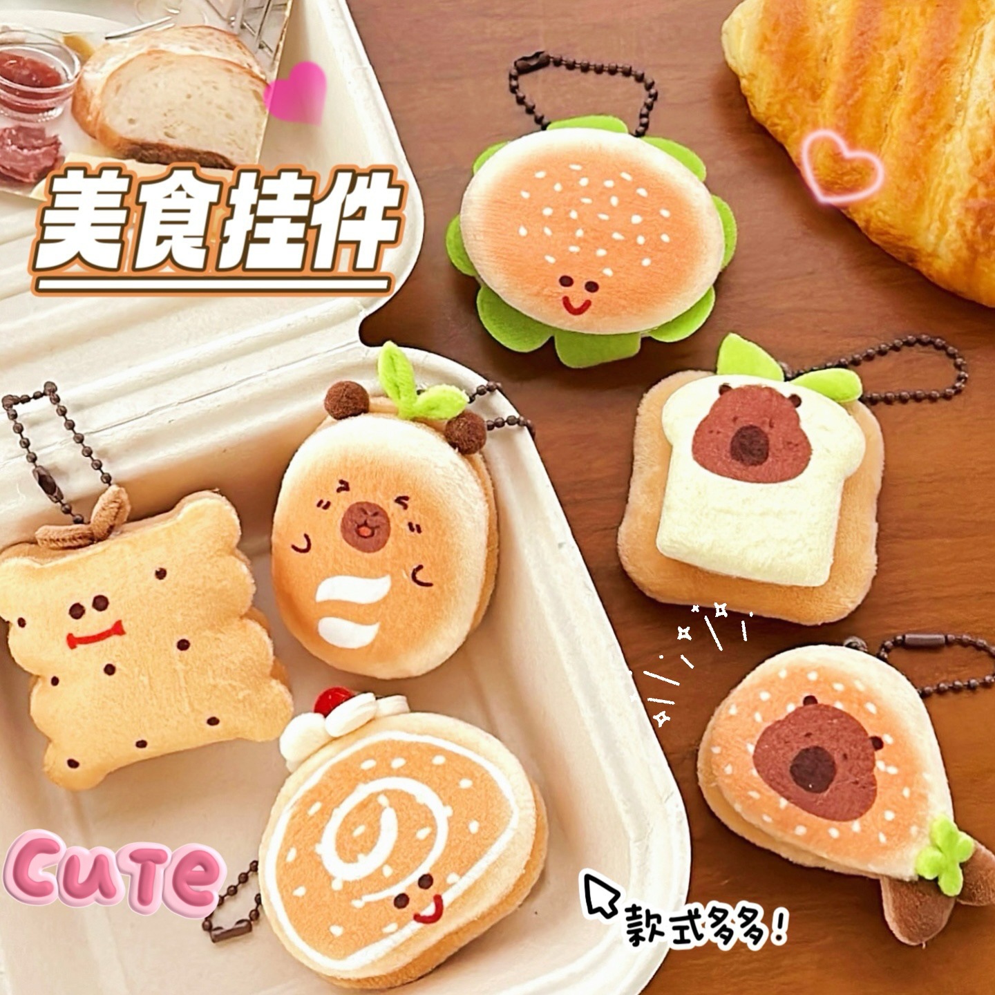 かわいいカピバラのカピバラのグルメの小さいパンのキーホルダーはアイデアの少女の心のかばんを掛けて小さいプレゼントを飾ります。