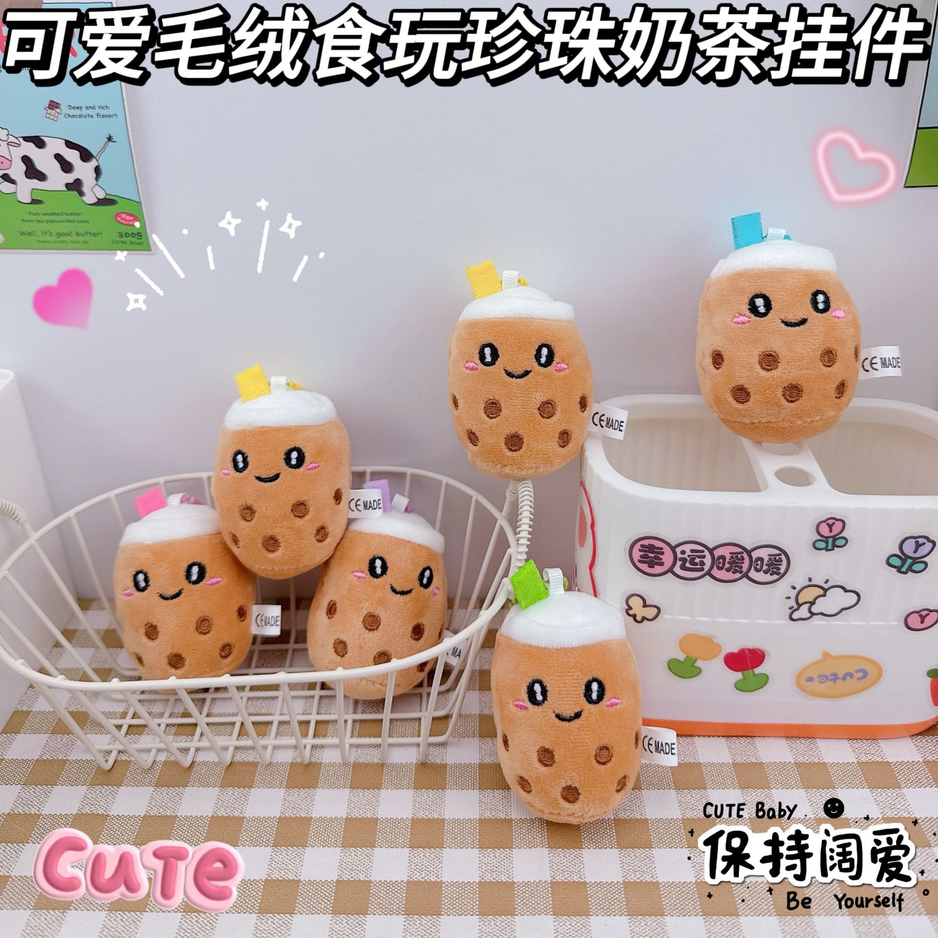 かわいい食品おもちゃぬいぐるみパールミルクティーキーホルダーペンダントクリエイティブ漫画パールミルクティーガールハートスクールバッグペンダント