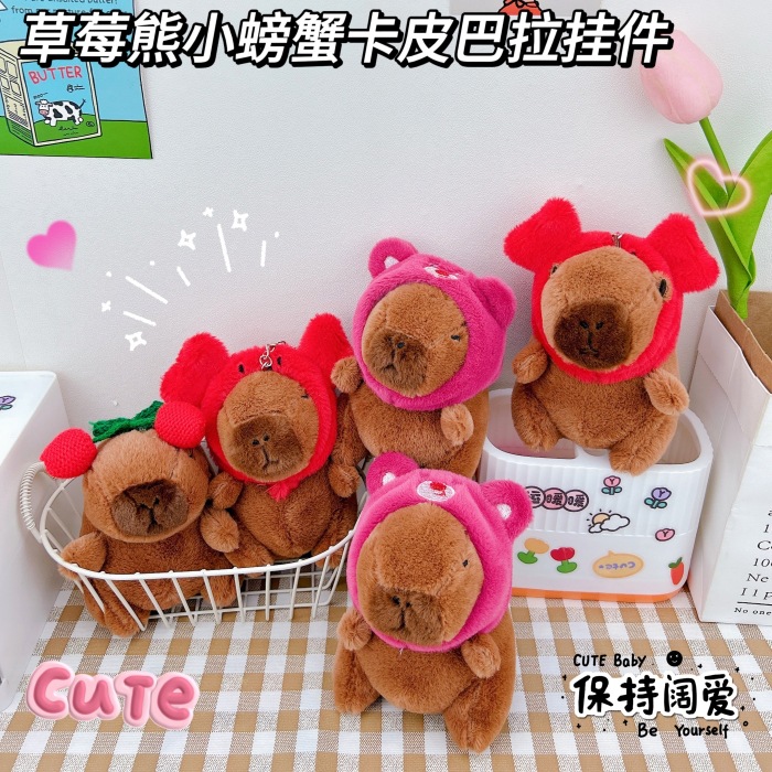 かわいいいちご熊のカピバラのキーホルダーのペンダントのアイデアの小さいカニのさくらんぼのカピバラのかばんの装飾の女性