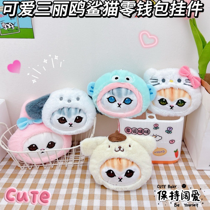 かわいい三麗欧はサメ猫の小銭入れのキーホルダーのペンダントの創意的なぬいぐるみのカップルのかばんの小さい掛け飾りの卸売りをします。