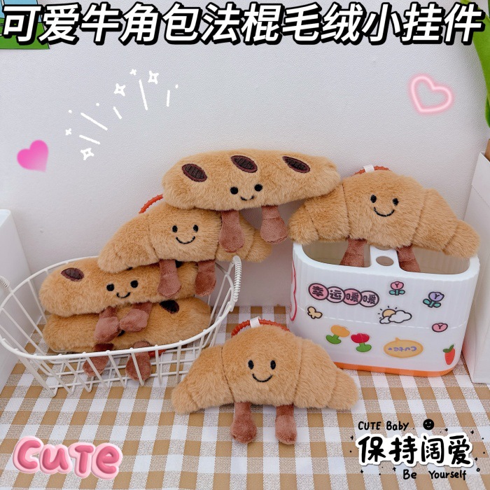 ネットの赤い牛の角の包みのフランスの棒の鍵はペンダントの創意の美食のぬいぐるみのぬいぐるみのフランスの棒のパンのかばんを掛けて卸売りを飾ります。