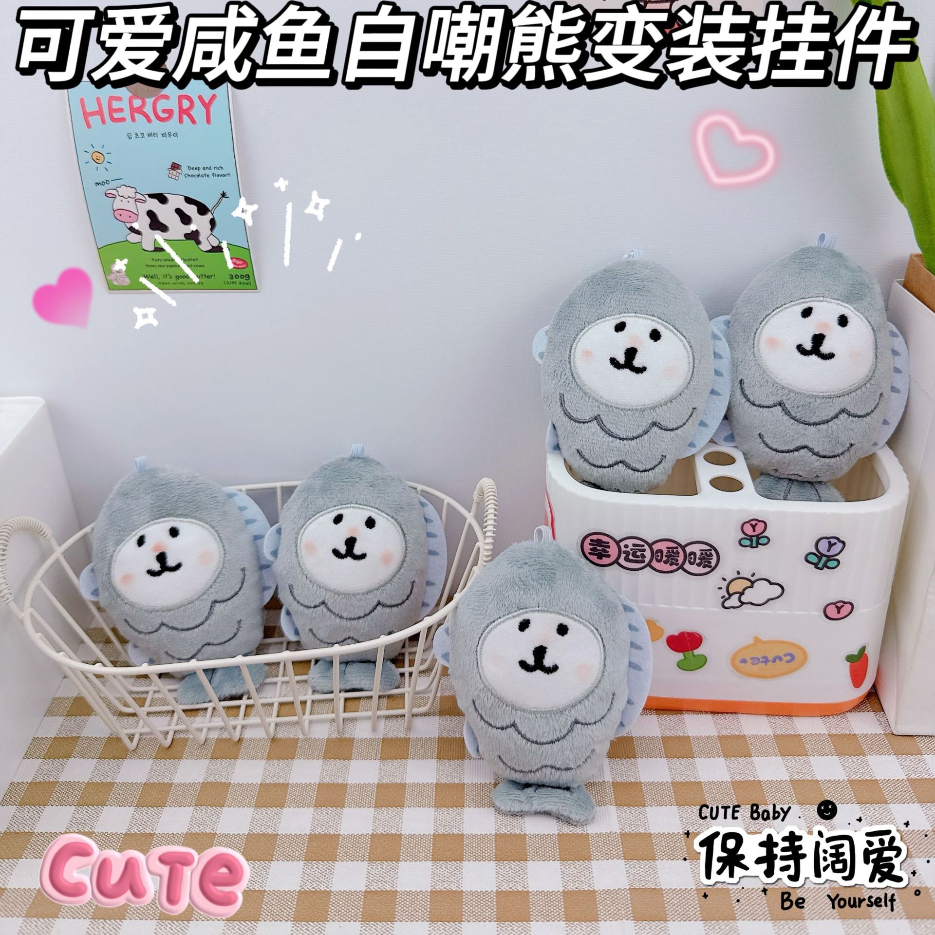 かわいいアニメの塩漬け魚が自嘲熊のキーホルダーを飾っています。