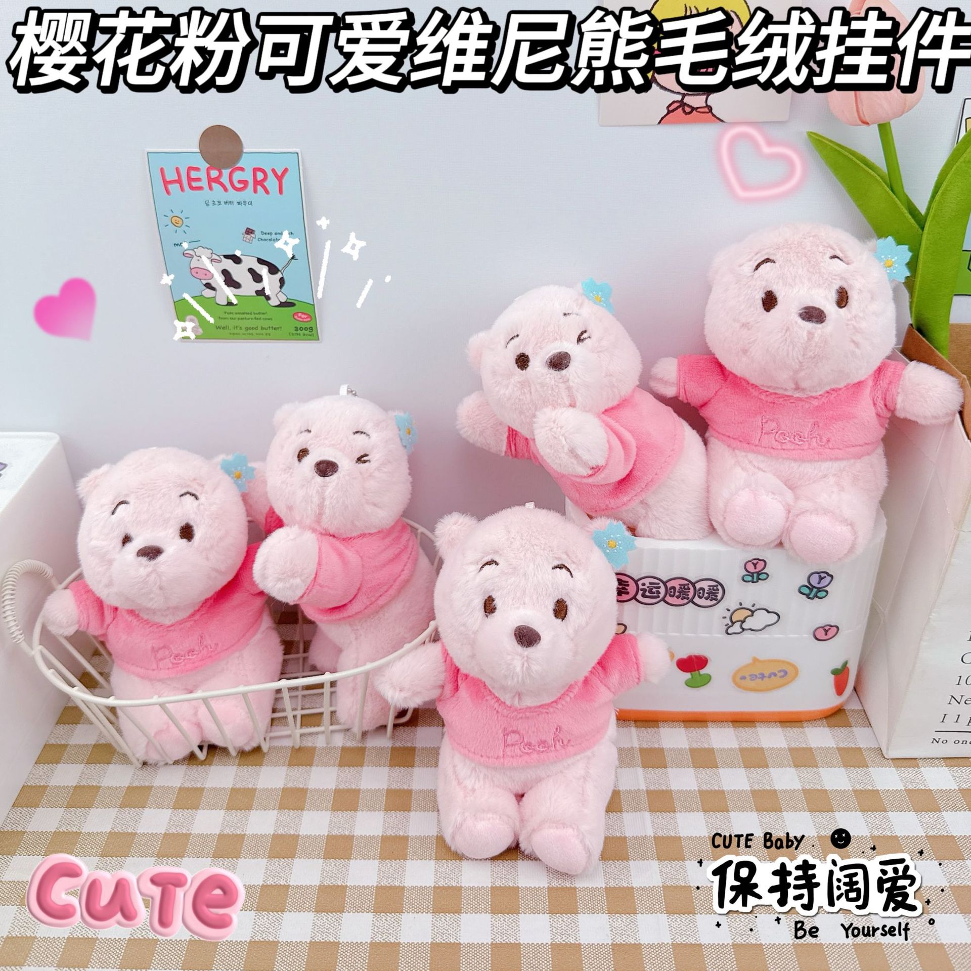 かわいいパフウィニー熊のキーホルダー桜花粉ウィニー熊のぬいぐるみカップルのかばんのペンダント