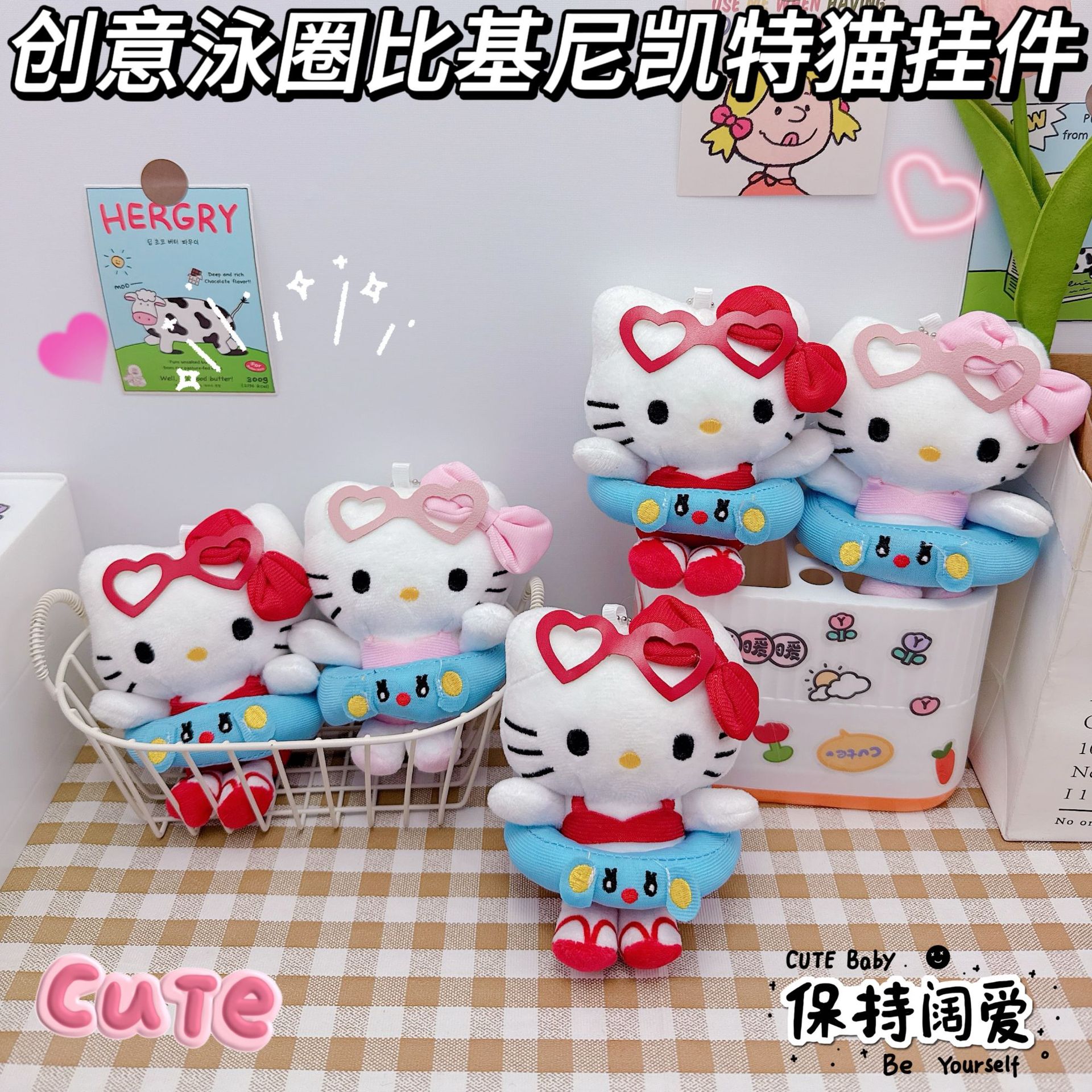 かわいい浮き輪ビキニケイト猫キーホルダー、クリエイティブなぬいぐるみ、夏のKT猫、女の子らしいハート型のバッグチャーム