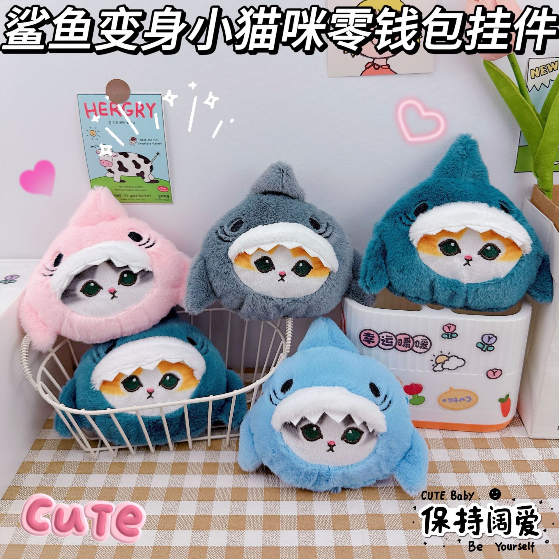 クリエイティブサメ猫小銭入れペンダントぬいぐるみコイン小銭入れ口紅ヘッドフォン収納袋学生スクールバッグペンダント