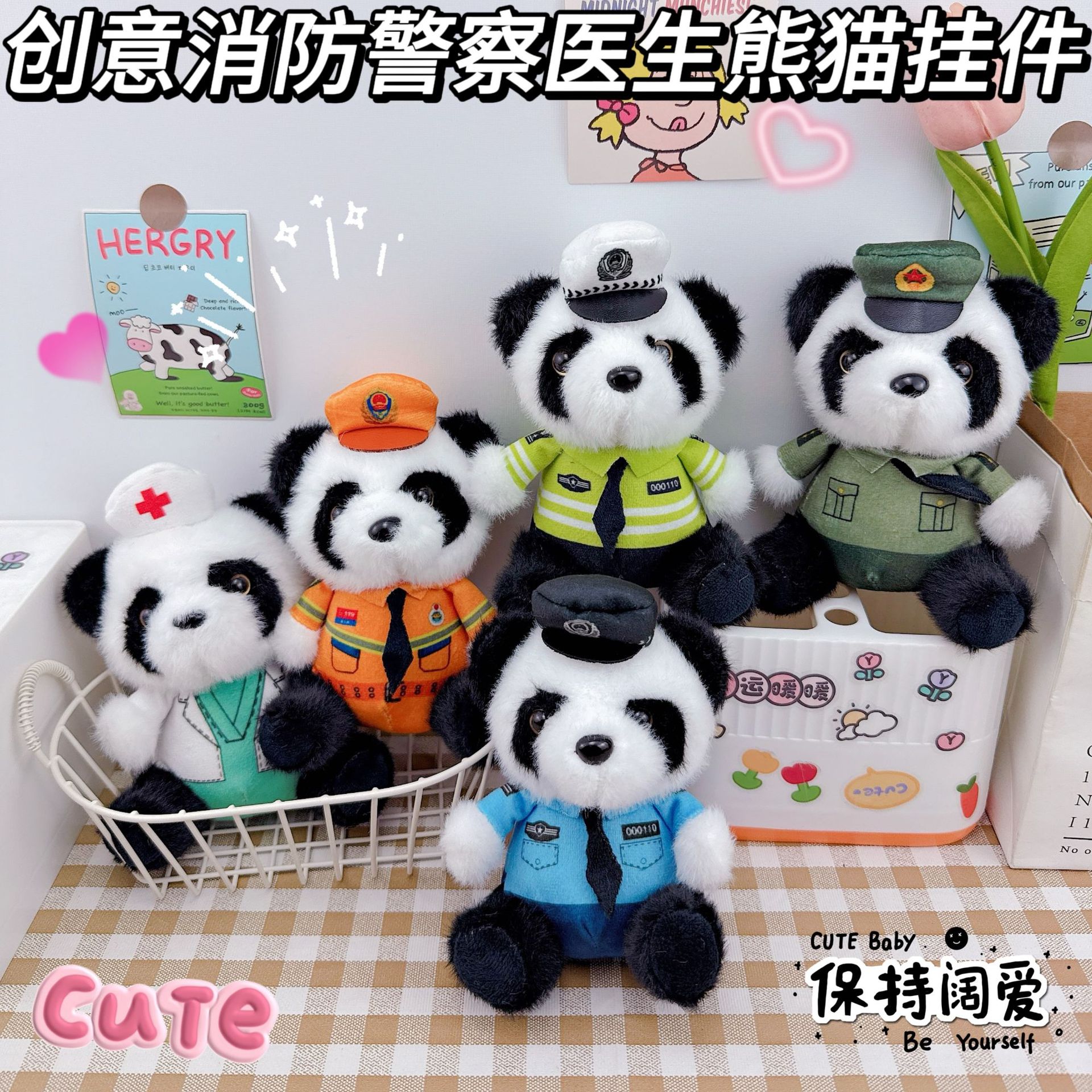 かわいい消防交通警察レッサーパンダキーホルダーペンダントクリエイティブぬいぐるみ警察パンダ人形おもちゃスクールバッグペンダント