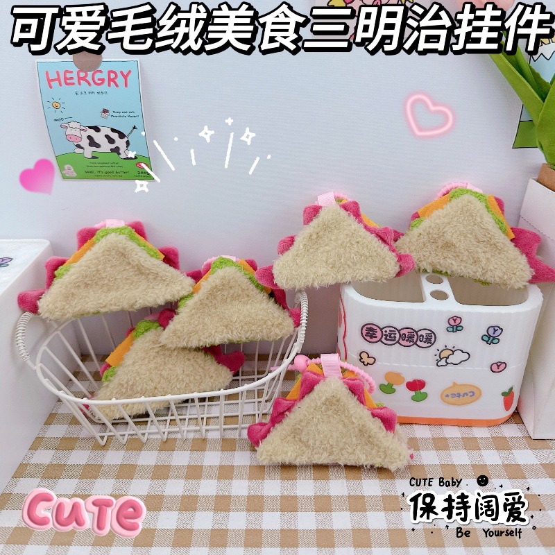 かわいい食品とおもちゃのサンドイッチキーホルダーペンダントクリエイティブぬいぐるみサンドイッチ人形おもちゃスクールバッグ小さなペンダント