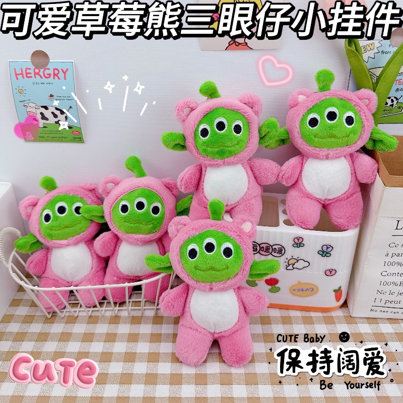 かわいいイチゴクマ三つ目の怪物車のキーホルダーペンダントクリエイティブぬいぐるみ三つ目の男の子のおもちゃスクールバッグペンダント