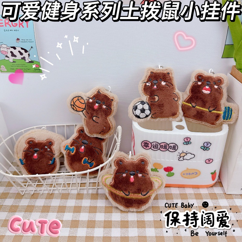 かわいいフィットネスシリーズきしむモールモスキートキーホルダーペンダントクリエイティブぬいぐるみモール人形スクールバッグペンダント