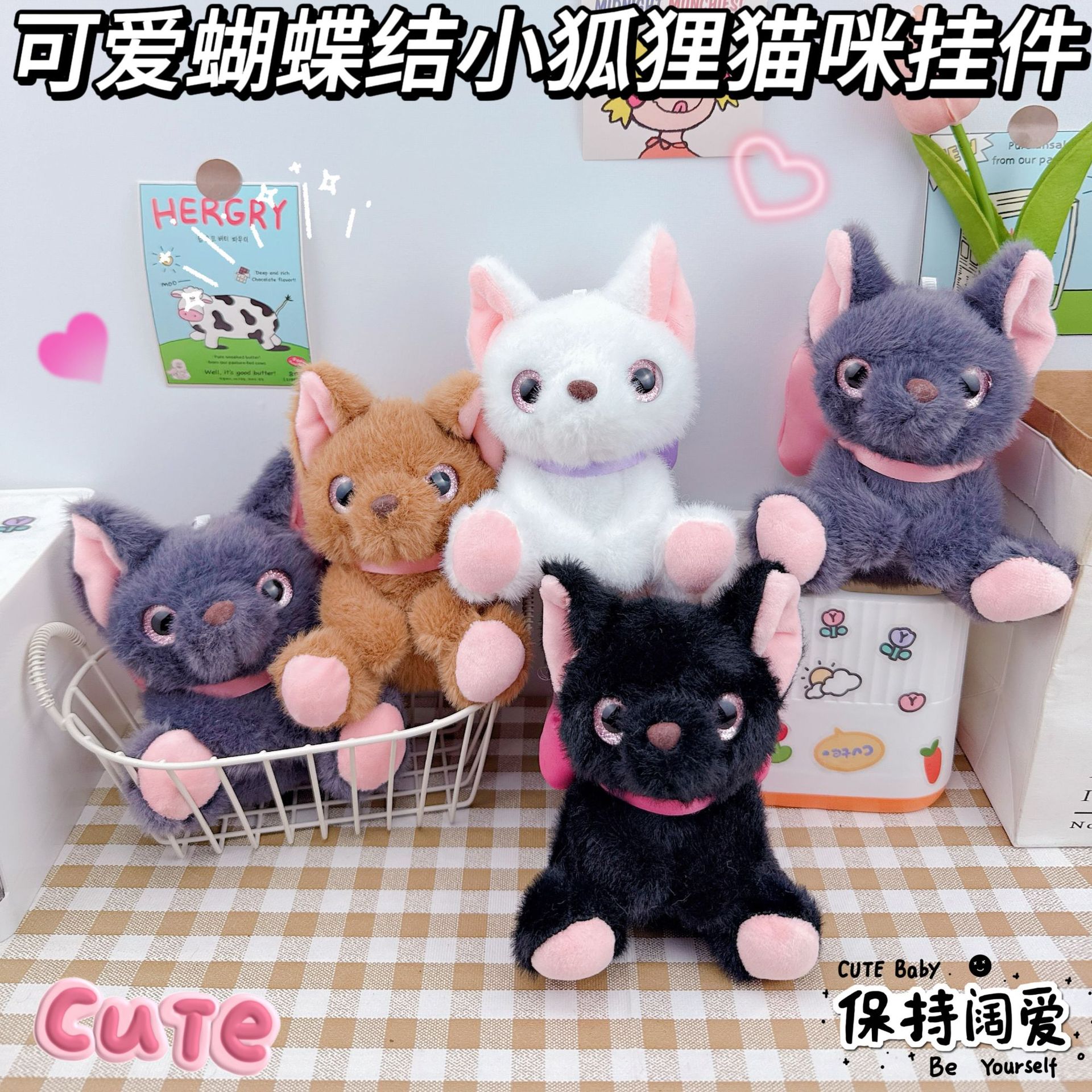 かわいいリボンキツネ猫キーホルダーペンダントクリエイティブぬいぐるみ子猫人形おもちゃスクールバッグペンダント