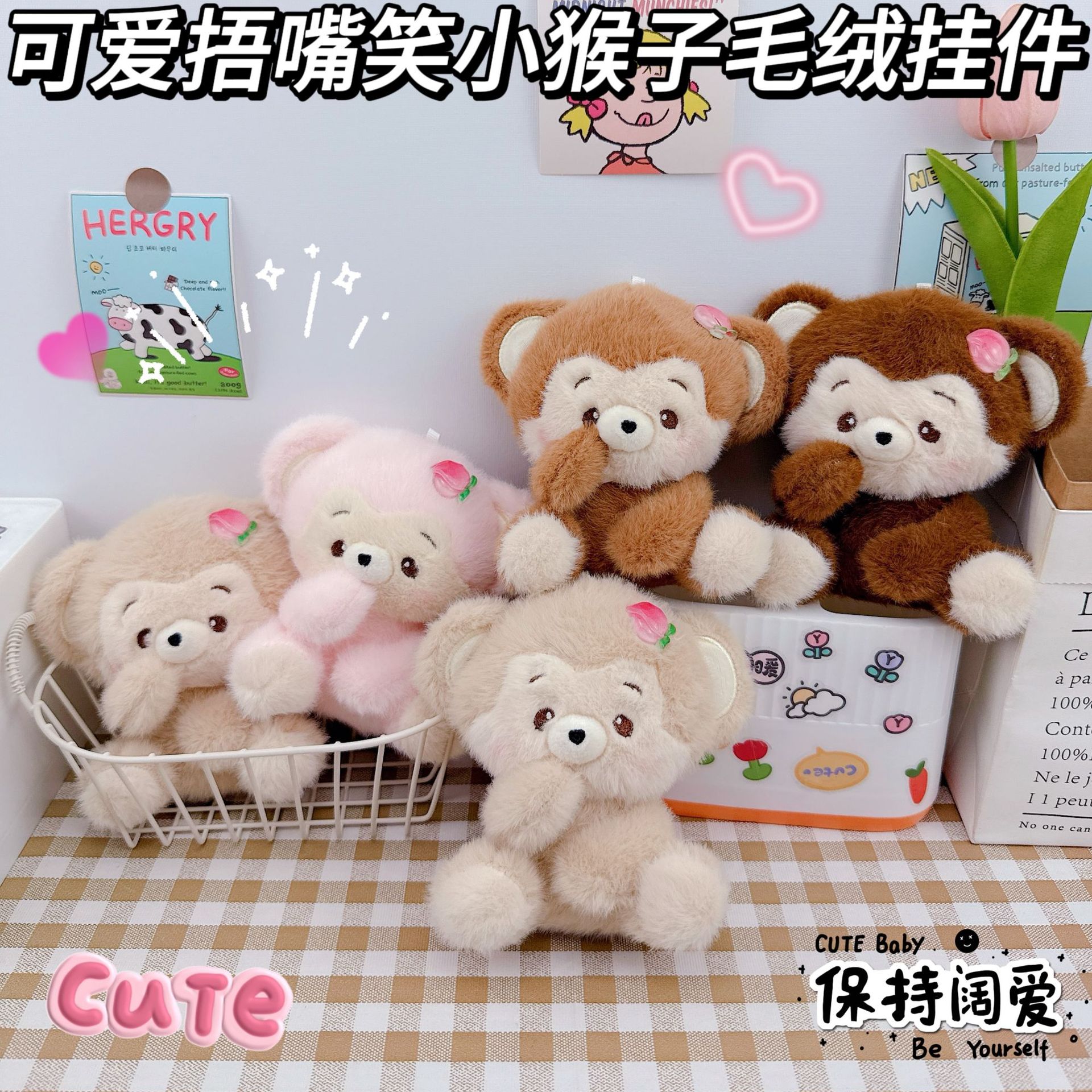 かわいい笑顔の小猿キーホルダーペンダントクリエイティブぬいぐるみ猿人形おもちゃカップルスクールバッグ小さなペンダント