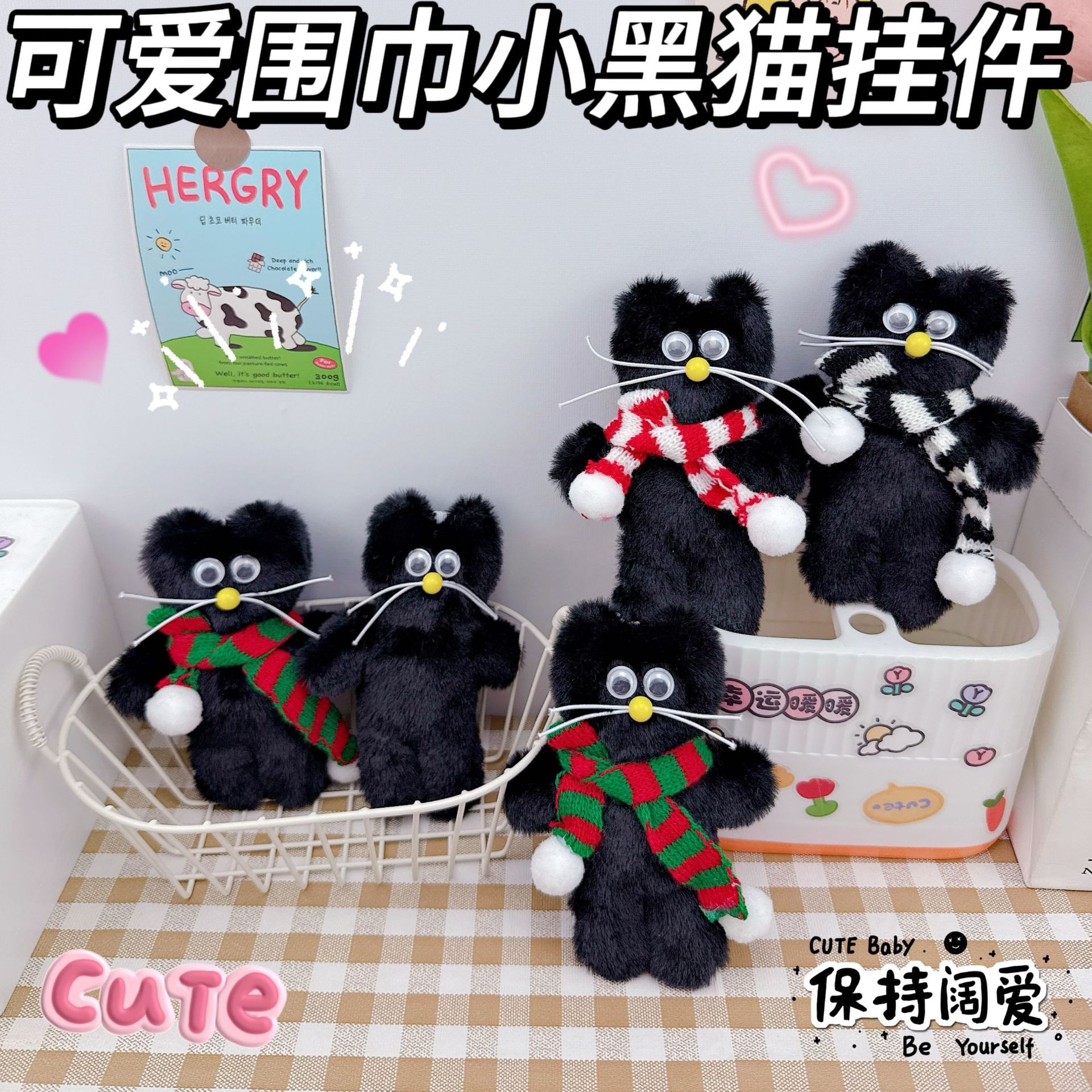 かわいいマフラーの黒い猫のキーホルダーのペンダントのアイデアのぬいぐるみの猫のペンダントのカップルのカバンのペンダントの卸売り