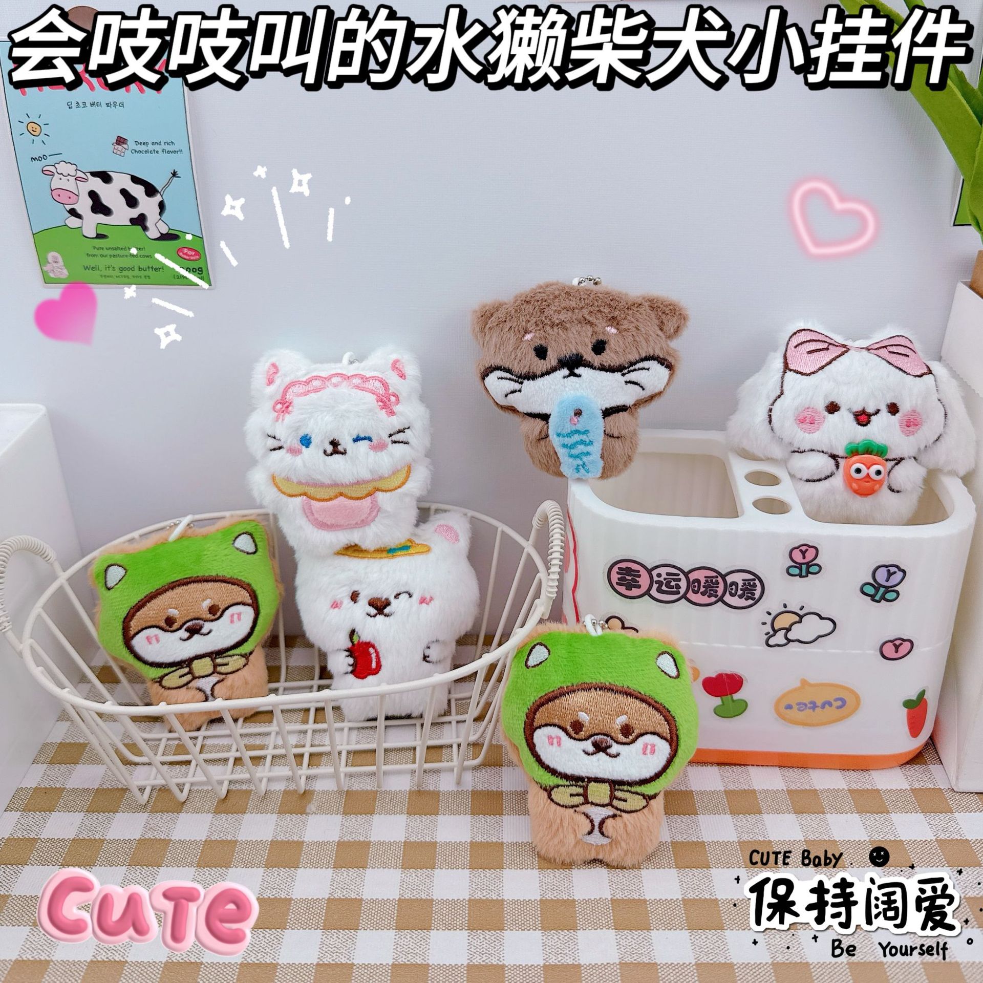 きしむ柴犬キーホルダーペンダントクリエイティブ魚カワウソぬいぐるみおもちゃガールハートスクールバッグ小さなペンダント