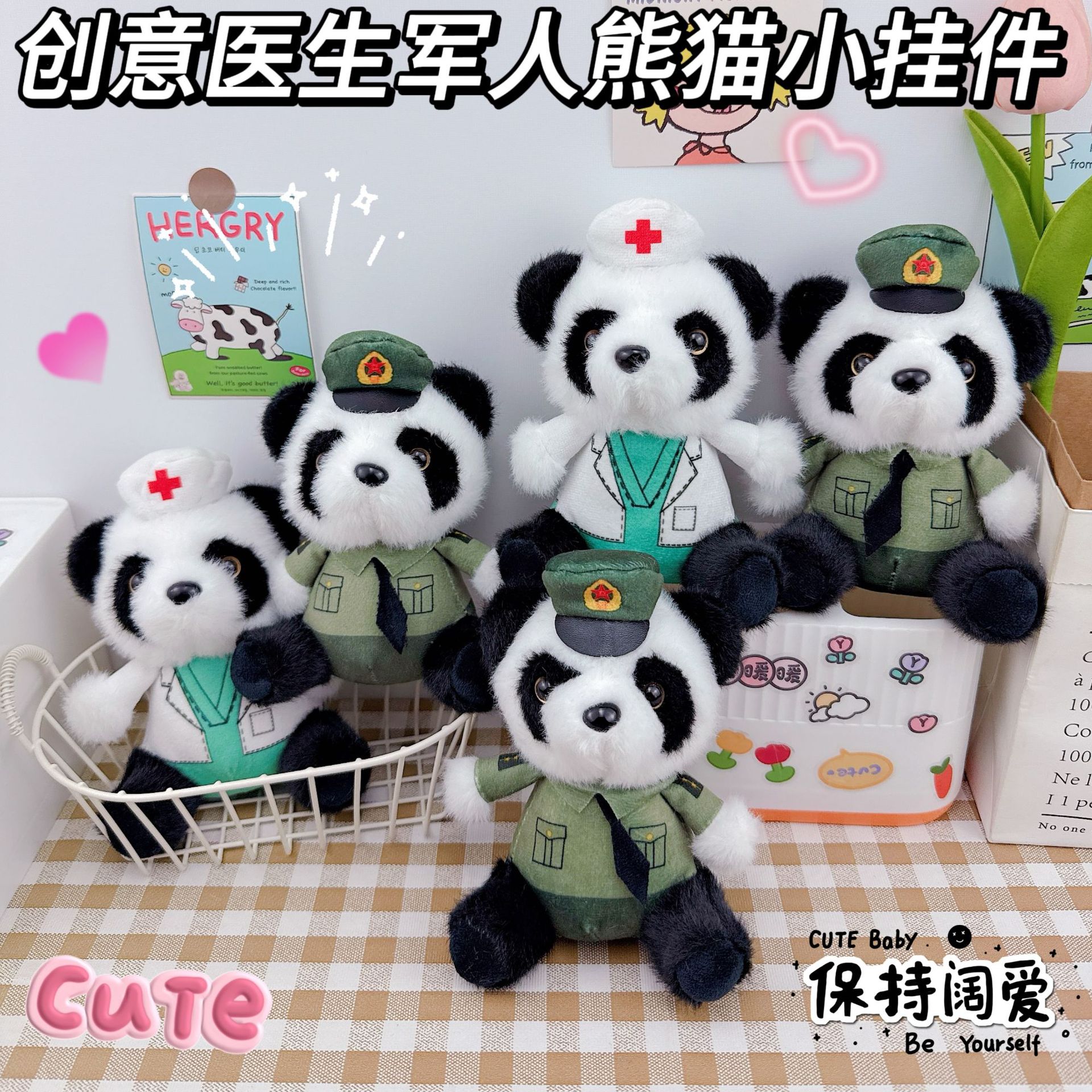 かわいい医者の職業のパンダのキーホルダーのペンダントのアイデアのぬいぐるみの軍人のパンダの子供のカップルのカバンは飾ります。