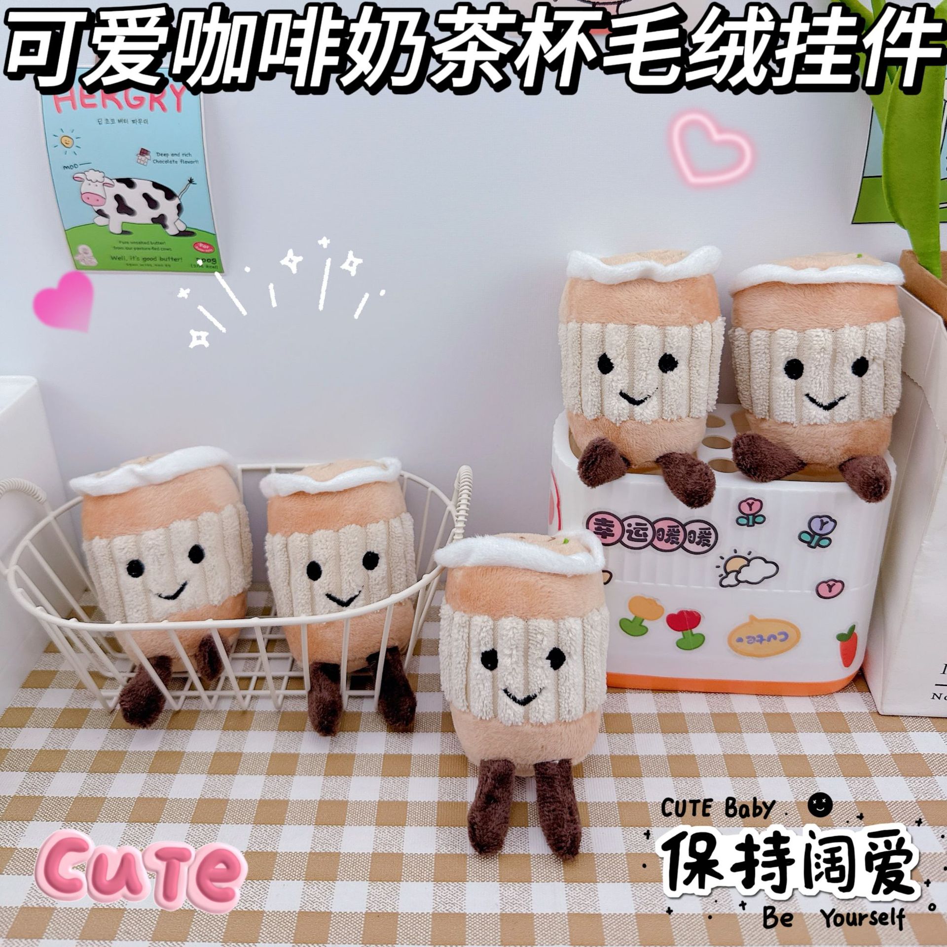 キュートで楽しいコーヒーミルクティーカップキーホルダーペンダントクリエイティブぬいぐるみミルクティー人形おもちゃガールハートペンダント