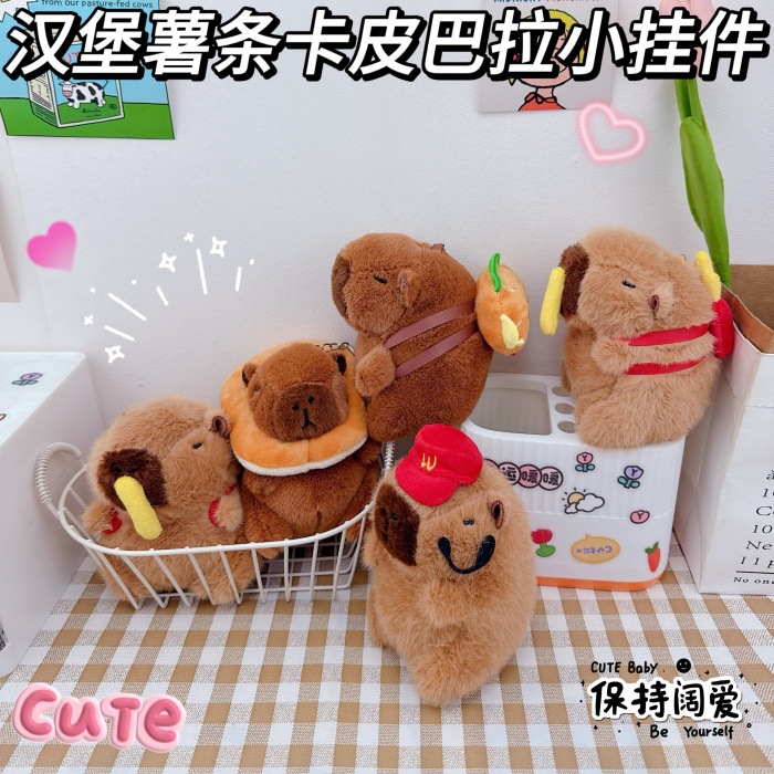 ハンバーガーのカピバラのキーホルダーのぬいぐるみのポテトチップスのバラのカピバラのペンダントのカップルのかばんの装飾