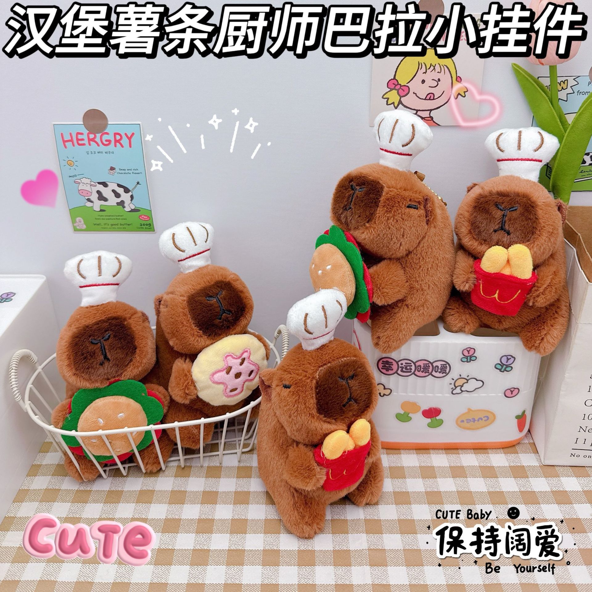 かわいい新商品のハンバーガーフライドポテトのシェフのカピバラのキーホルダーのペンダントのカピバラのぬいぐるみのかばんの小さいペンダント