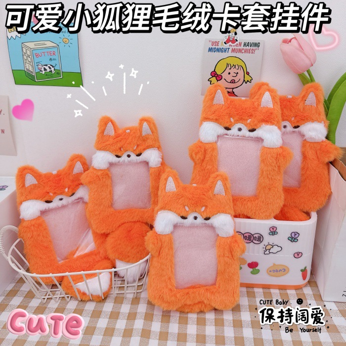かわいいキツネのぬいぐるみバスのキーホルダーのアイデア愛豆保護カードの学生の食事カードのストラップ