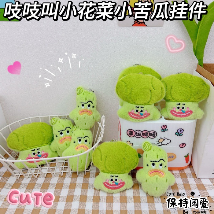 キーキーと鳴くブロッコリーの小さなニガウリのキーホルダーのアイデアのぬいぐるみ野菜の小さな花菜のかばんの飾り