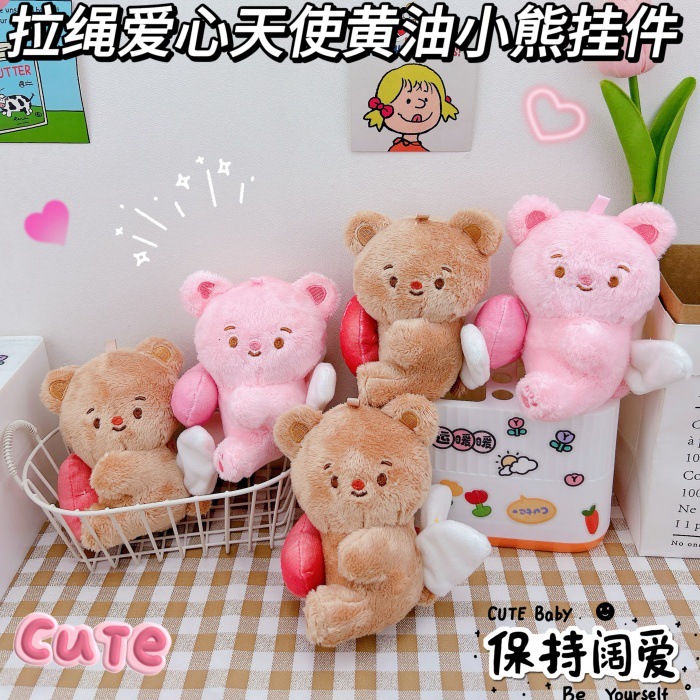 ロープを引く愛の天使バター熊のキーホルダーのアイデアのプレゼントカップルのかばんの飾り
