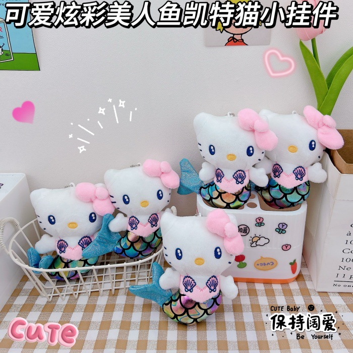 かわいいカラフルなマーメイドケイト猫のキーホルダーのアイデアkt猫ぬいぐるみカップルのバッグの卸売り