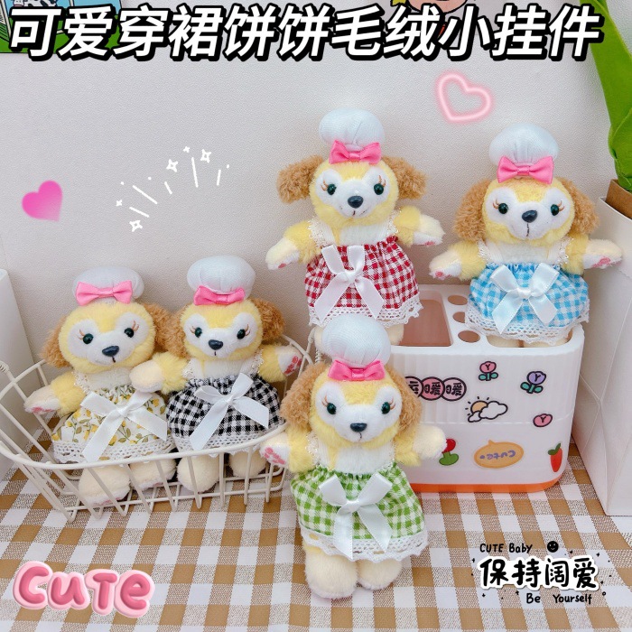 かわいいスカートを着て料理人の餅のぬいぐるみのキーホルダーを着てアイデアの少女の心の星をかぶって餅のかばんをかぶって飾ります。
