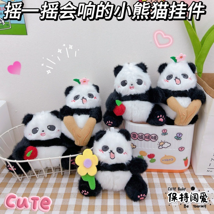 揺れると音がするパンダのキーホルダーのペンダントのアイデアのぬいぐるみのパンダのカップルのカバンは卸売りを飾ります。