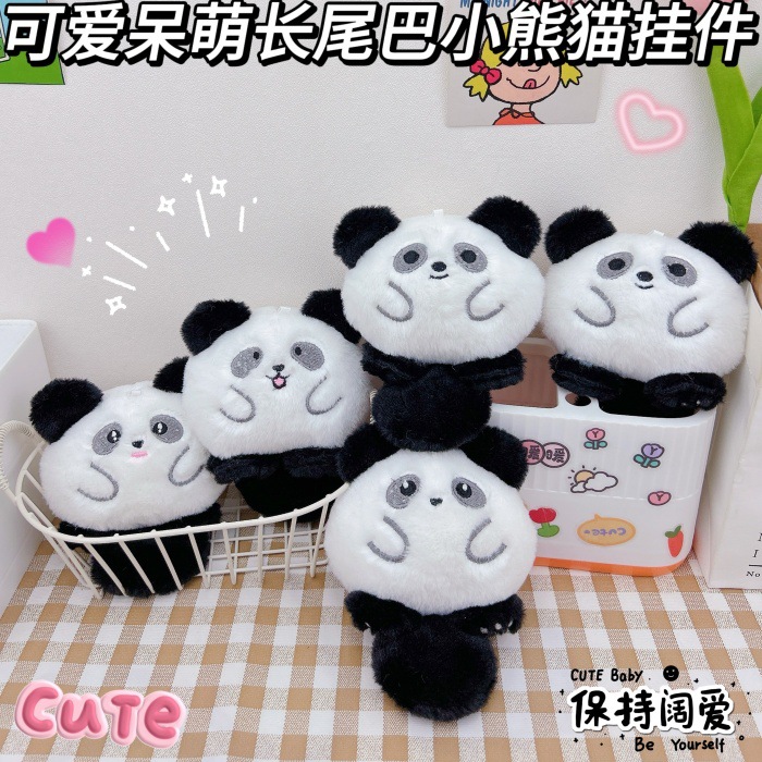 かわいいぼんやりしていて、長いしっぽの小さいパンダのキーホルダーのペンダントの創意のぬいぐるみのボールのパンダのかばんの小さい掛けは卸売りを飾ります。