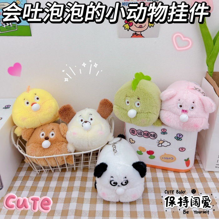 かわいい太ったビープ音が泡を吐く小動物のキーホルダーは、クリエイティブなぬいぐるみカップルのかばんを飾っている