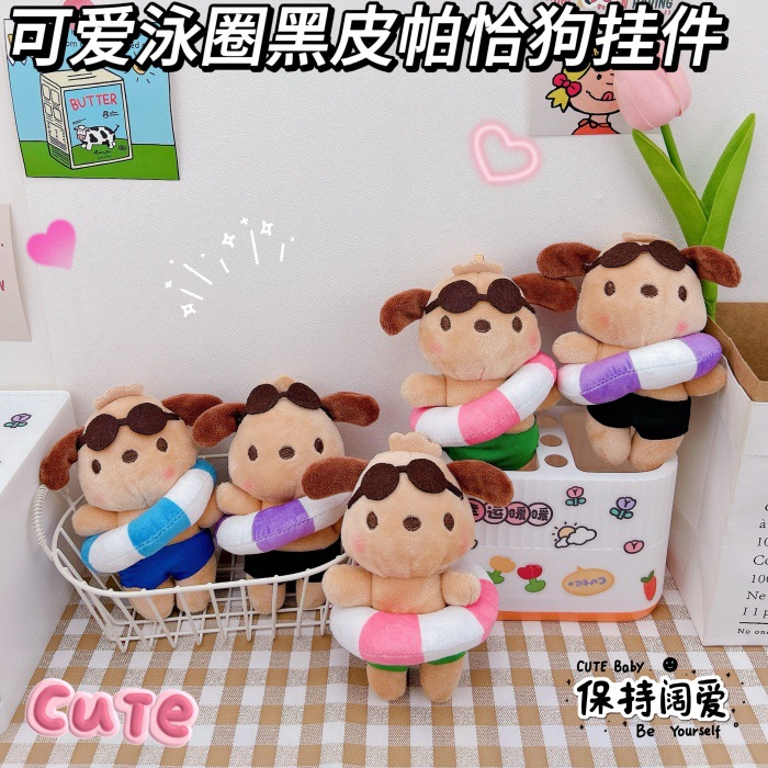 浮き輪黒皮パーチャ犬のキーホルダーペンダント創意水泳輪はチャチャ犬のぬいぐるみカップルのかばんの小さなペンダントを恐れている