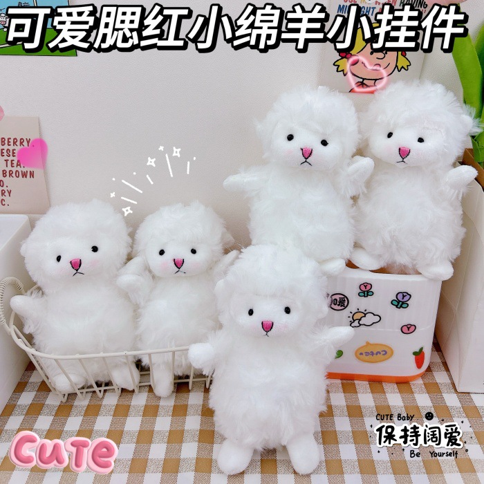 かわいい頬紅の小さなヒツジのキーホルダーのアイデアのぬいぐるみの白い羊の人形のカップルのカバンは卸売りを飾ります。