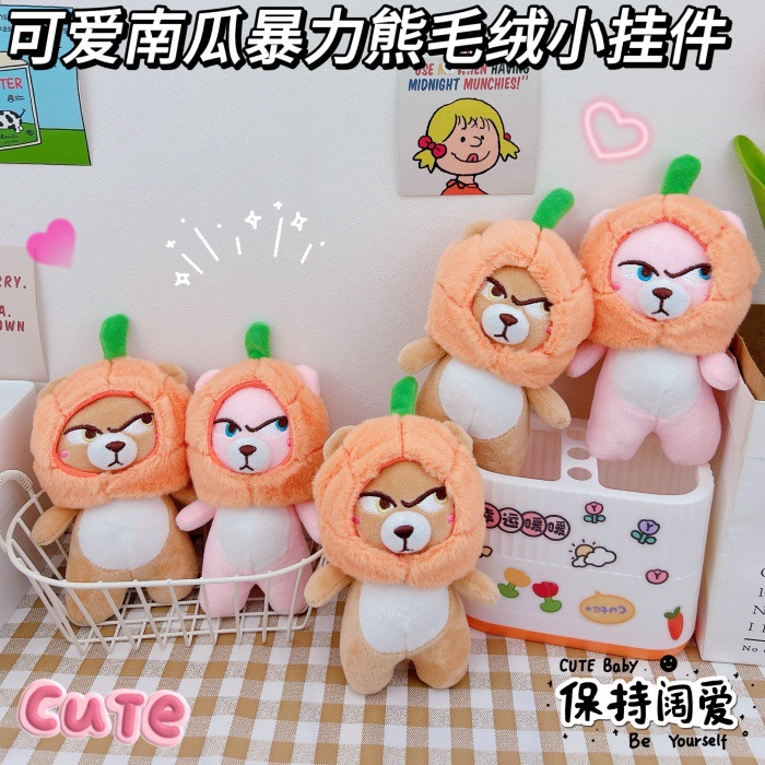 かわいいカボチャの暴力的な熊のキーホルダーのペンダントのアイデアのぬいぐるみのカボチャの熊のカップルのカバンのペンダントの卸売り