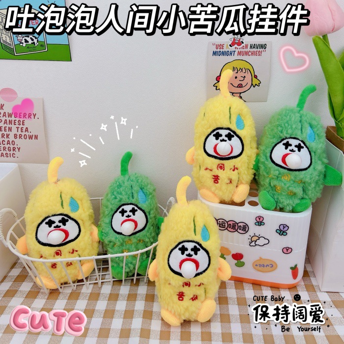 かわいい泡を吐く人間の小さなニガウリのキーホルダーのアイデアのぬいぐるみの小さなニガウリのかばんの飾り