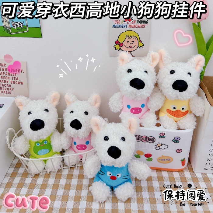 かわいい服を着た西高地の子犬のキーホルダーのペンダントのアイデアのぬいぐるみのカップルのかばんのペンダントの卸売り