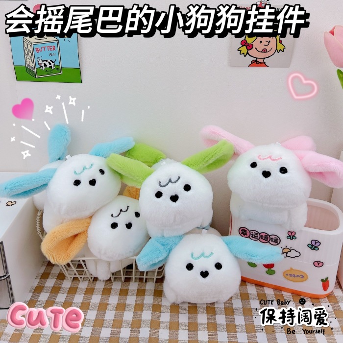 かわいいと尻尾を振る子犬のキーホルダーのアイデアぬいぐるみカップルのかばんのペンダント卸売り