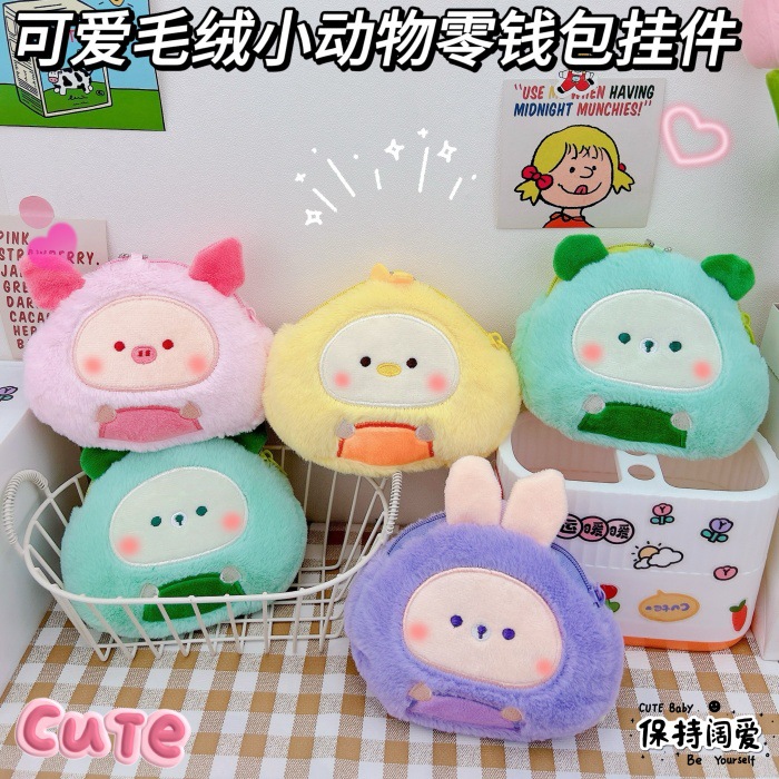 かわいいぬいぐるみ小銭入れキーホルダークリエイティブコインバッグ口紅イヤホン収納バッグペンダント