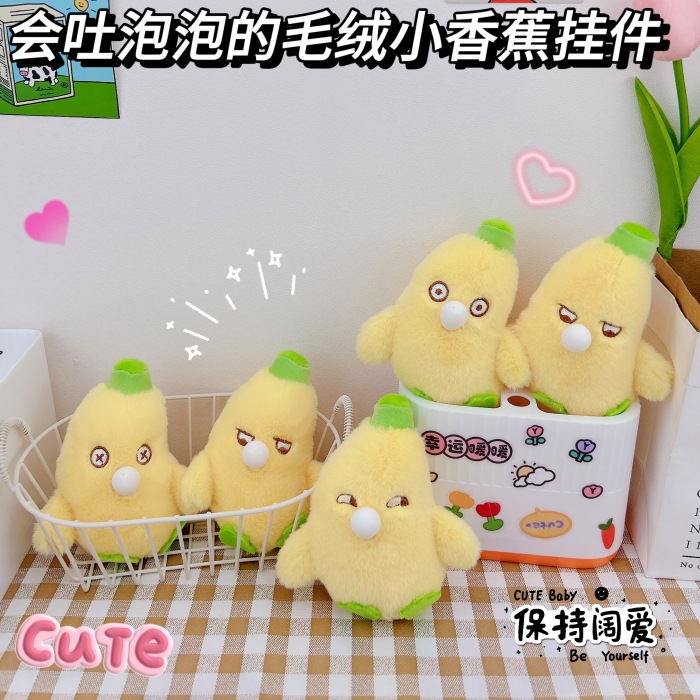 泡を吐くのがおかしいバナナのキーホルダーはクリエイティブなぬいぐるみカップルのかばんを掛けて卸売りします。