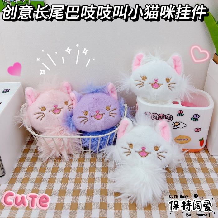 ギシギシと叫ぶことができる長いしっぽの子猫のキーホルダーは創意的な少女の心の小さいプレゼントのカップルのカバンを掛けて飾ります。