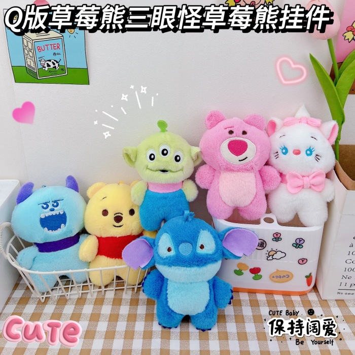 かわいいいちご熊三眼怪スティッチのキーホルダーのアイデアのぬいぐるみ