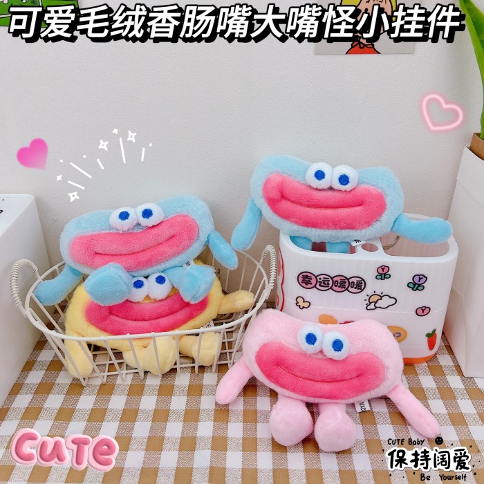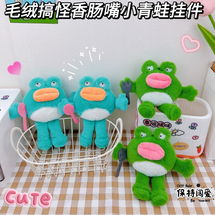 かわいいおかしなソーセージの口の小さいカエルのキーホルダーのペンダントの創意の少女の心のカエルのぬいぐるみのかばんは装飾を掛けます。
