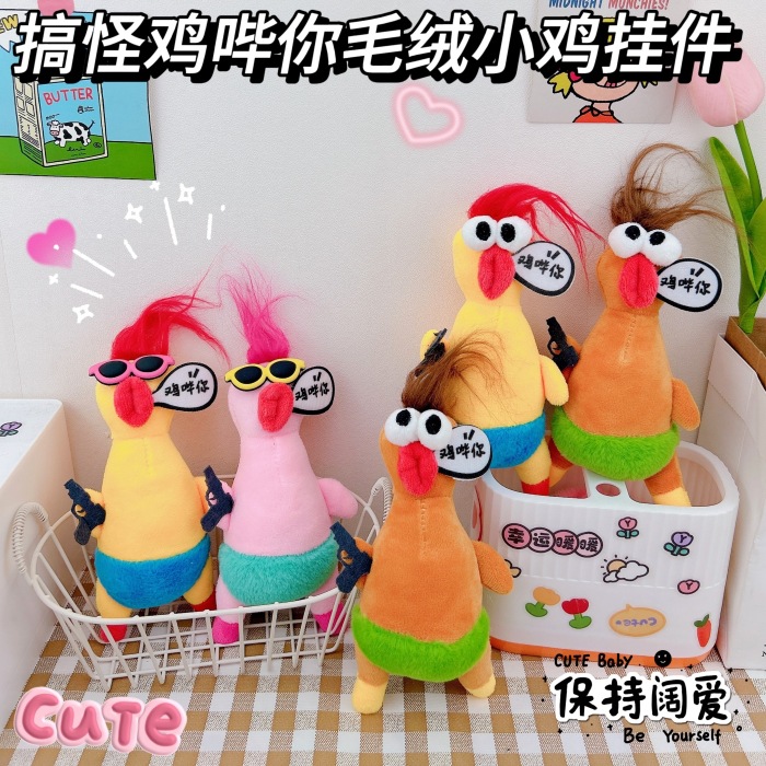 奇妙な創造的な鶏があなたのキーホルダーにかわいいぬいぐるみのひよこのかばんに飾られた人形卸売りをしています