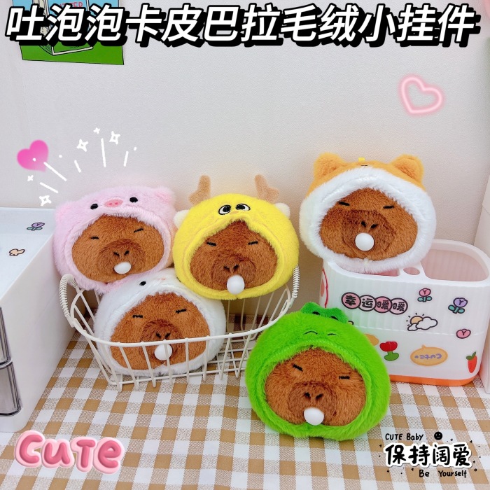 かわいい泡を吐くカピバラのキーホルダーのアイデアのぬいぐるみのカピバラのかばんは卸売りを飾ります。