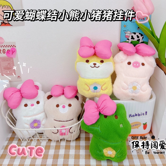 かわいい蝶結びのブタの子犬のパンダのキーホルダーのペンダントのアイデアのぬいぐるみのかばんは卸売りを飾ります。