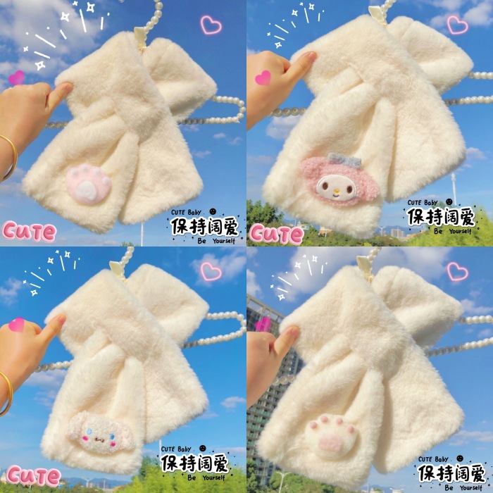 かわいいアニメ少女熊のマフラーが首を囲んでいる冬の新型学生が首を囲んで保温している
