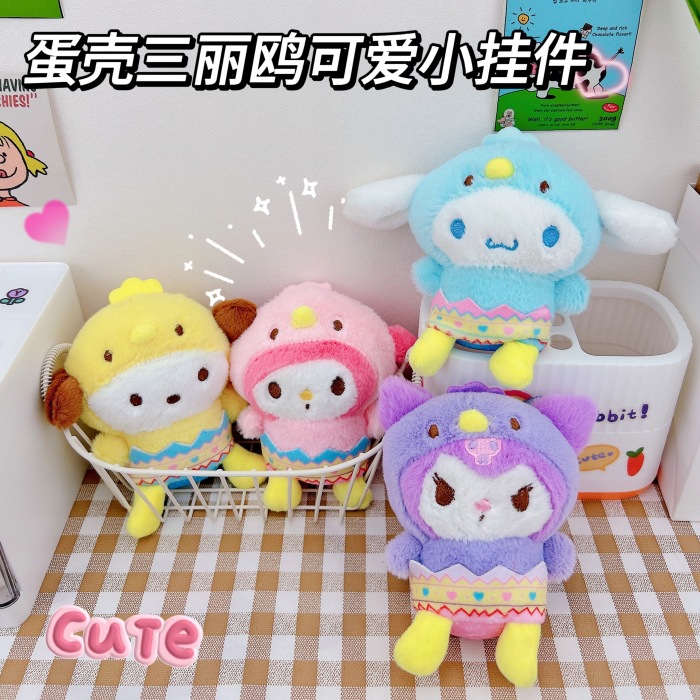 卵の殻のサンリオのペンダントのひよこはクロミの玉桂の犬に変身します。