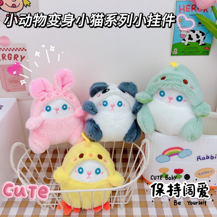 ネット赤かわいい猫変身動物シリーズキーホルダークリエイティブかばん掛けぬいぐるみ卸売り