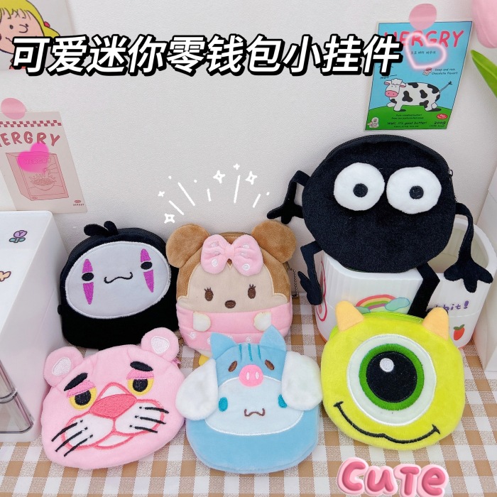 かわいい小さな石炭ボールの大きな目の子の小銭入れのキーホルダーのペンダントの創意的なぬいぐるみの少女の心の硬貨は身分証明書のカバンを包みます。