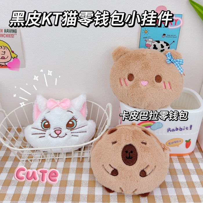 ぬいぐるみのケイトの猫の黒い皮のkt猫の小銭入れのキーホルダーのペンダントのかわいいカピバラの硬貨のカバンのデータラインの包み